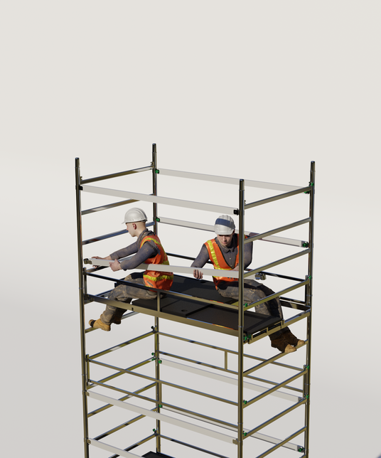Lo strumento alza spalle ProTech e il sistema di montaggio ABL permettono il montaggio del trabattello senza l'utilizzo di dispositivi anticaduta, e senza la necessità di ancoraggi a parete (se non per altezze all'esterno maggiori di 8m) in totale sicurezza e rispetto di UNI EN 1004-2.